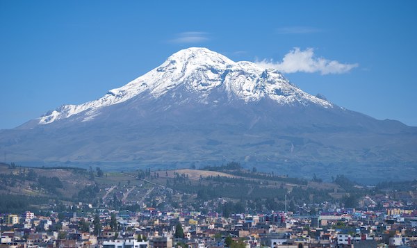Cayambe, Cotopaxi, Chimborazo Ecuador Cayambe 18,997 feet/5790 meters, Cotopaxi 19,348 feet/5897 meters, and Chimborazo 20,703 feet/6310 meters |