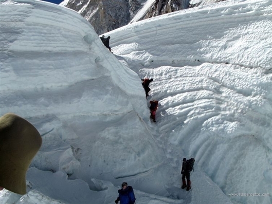 Heading up the base of the Khumbu Icefall